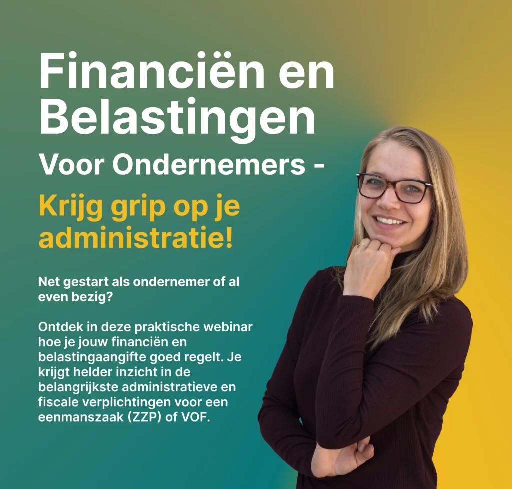 Leer hoe je als ondernemer meer grip krijgt op je financiën en administratie. In deze waardevolle webinar deelt Suzanne haar kennis over boekhouding, belastingvoordelen en slimme tools.